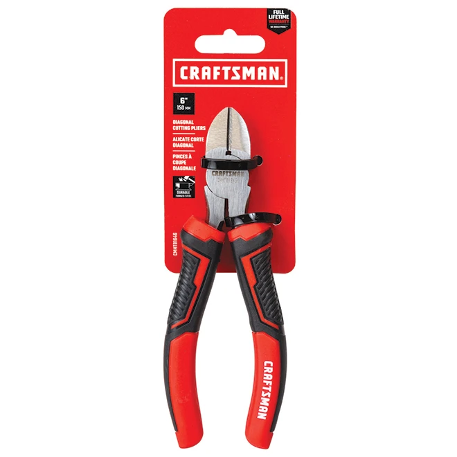 This pair of diagonal cutting pliers by Craftsman® features multizone bi-material grips for more comfort and control. Its induction-hardened cutting edges stay sharper longer and its drop-forged steel construction confers more strength and durability. These pliers have a corrosion-resistant finish and are ideal for carpentry, DIY projects and MRO as well as electrical, mechanical and plumbing applications.