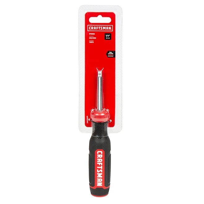The Craftsman® nut driver is equipped with a spinner handle and is compatible with 1/4” drive sockets, extensions and adapters. It allows access to places where rachet use is impossible. The handle features speed, torque and tactile zones for the optimum turning in applications.