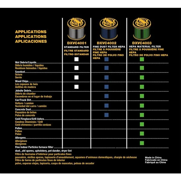 DEWALT High Efficiency/Fine Dust/Drywall Cartridge Filter – 15,19,30 Litres