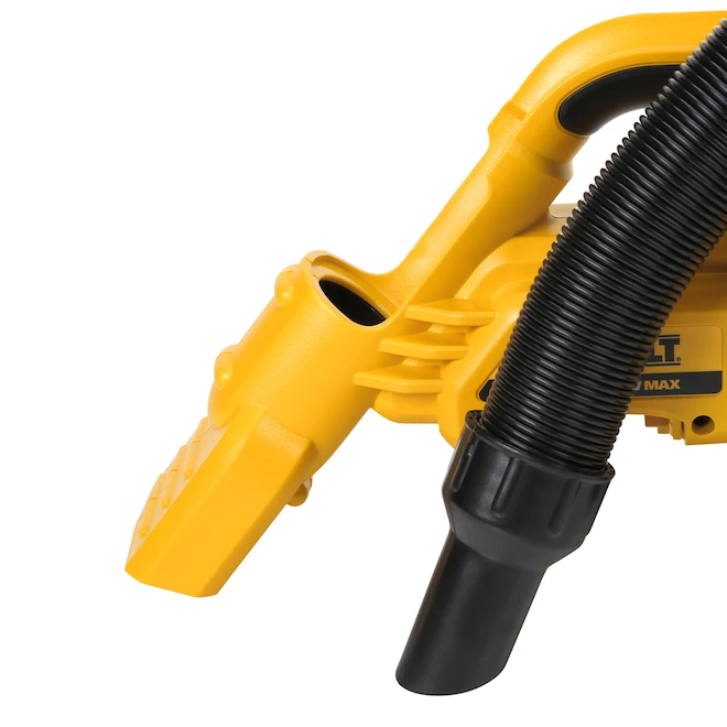 Clean up after your projects with the help of this Dewalt cordless wet and dry vacuum. The portable vacuum has dual modes that let you use the front nozzle or extendable rubber hose for versatile performance. The tank has capacity of 1/2 gallons and the heavy-duty latch that lets you empty it easily. The Gore(TM) HEPA filter is washable and traps dust at 0.3 microns, and the vacuum is powered by a 20-volt battery (not included) for lasting runtime.