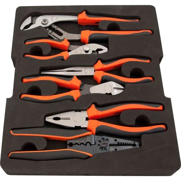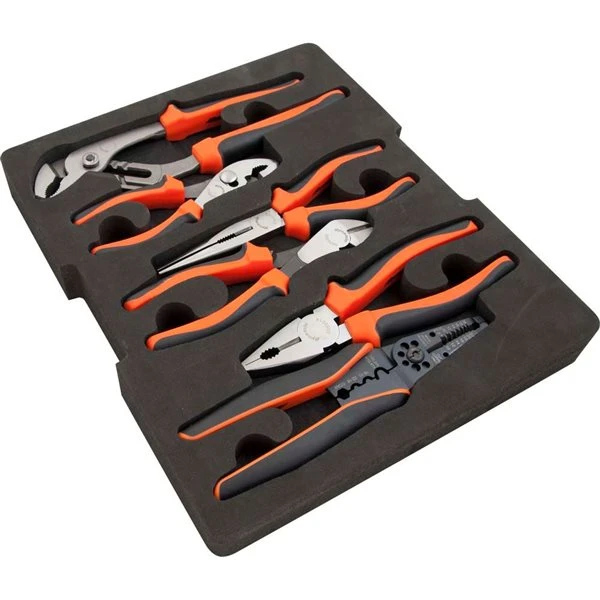 Dynamic Tools 7-Piece Pliers and Wire Stripper Set With Foam Tool Organizer