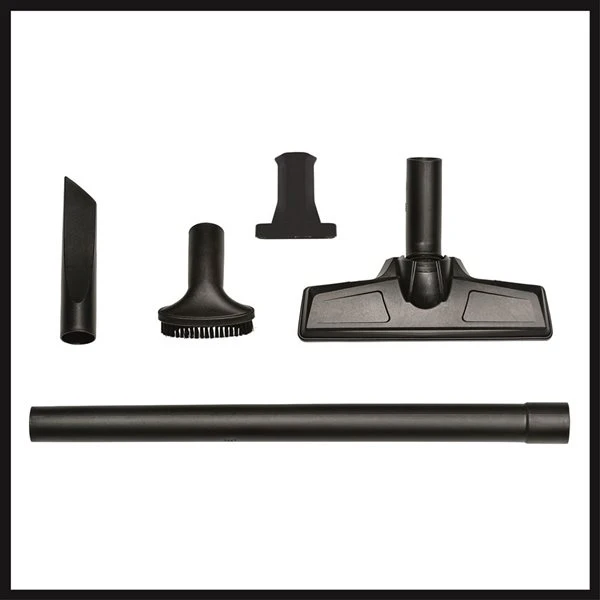 The Einhell TE-VCÂ 18 Li-Solo cordless handheld vacuum cleaner is always ready to hand for clearing up dirt and annoying crumbs on the carpet, sofa or table. The cordless handheld vacuum cleaner gets every surface cleaned quick as a flash thanks to the three inclusive nozzles. The floor nozzle is specially designed for hard floors and smooth surfaces. A second nozzle is provided for upholstery and fabrics. With the crevice nozzle you can also clean hard-to-reach areas with little effort as well. The 18″ extension tube makes it easy for you to use the convenient cordless vacuum cleaner to clean floors while you are standing up. The dust container has a capacity of 540 millilitres. For space-saving storage there is an integrated wall holder. This product comes without a battery and charger which are available separately, for example as a practical starter set.