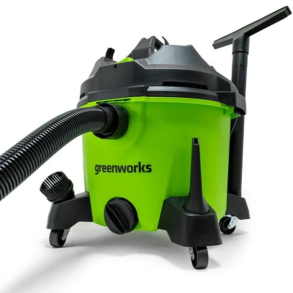 The Greenworks wet/dry vacuum is the perfect home and job-site tool for fast cleanup of wet or dry debris. Easily clean up large areas as well as hard-to-reach places with the included attachments. When in blower mode, you can also blow dirt and debris out from under hard to get to areas with air volume of 105 CFM. This vacuum will tackle the job anywhere, no matter how big or small.