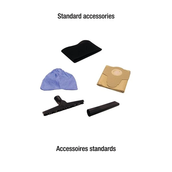 - Comes with a 6-ft x 1 1/4 po thread-on hose, a plastic extension wand, a dust bag, a foam filter, a reusable filter, a 10-in floor sweep and a crevice tool