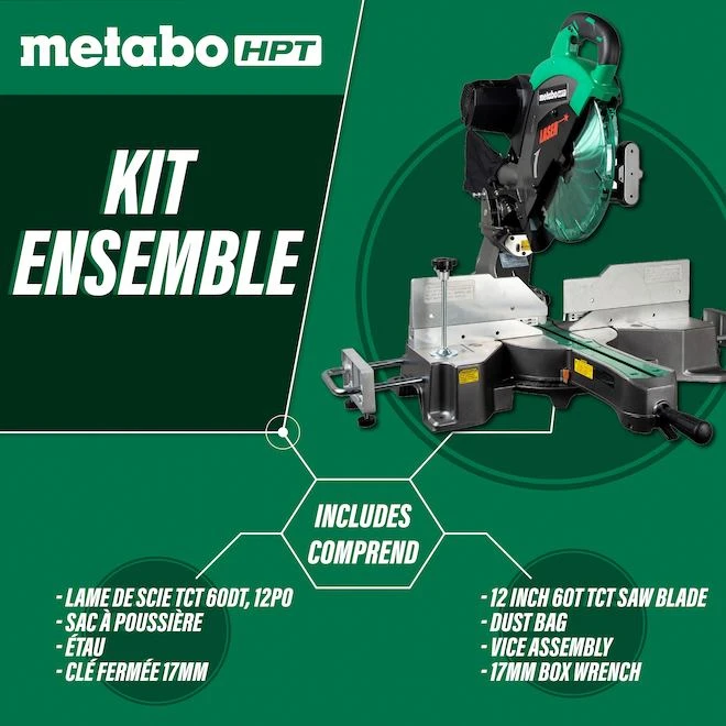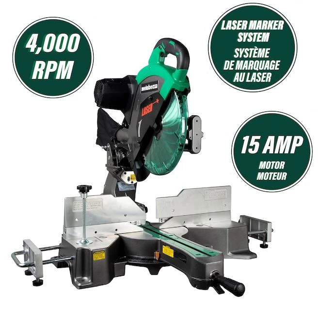 Metabo HPT Dual Bevel Sliding Mitre Saw With Laser – 12-in – Aluminum