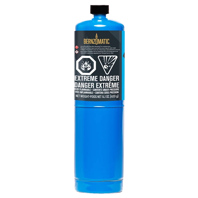 Propane. 14.1oz (399.7gr). Propane cylinder for soldering and brazing. works with Bernzomatic and other standard hand torches. To use only with torches designed for propane gas.